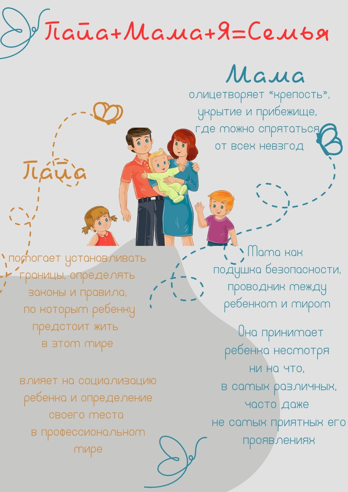 Семья – это где ребенок получает воспитание, знакомится с семейными традициями и получает жизненный опыт. Для ребенка главные люди в жизни – родители, подарившие жизнь и воспитавшие его.