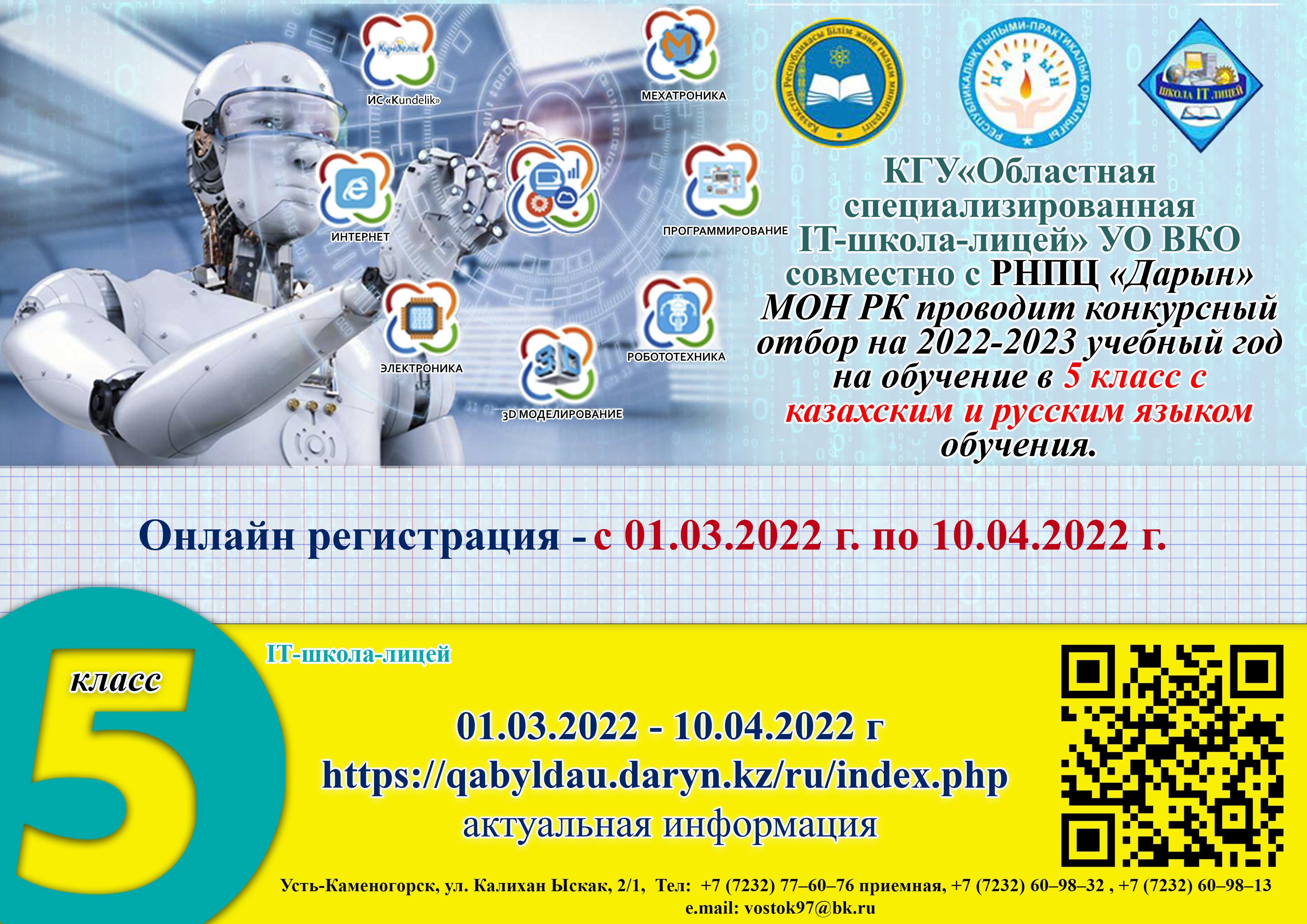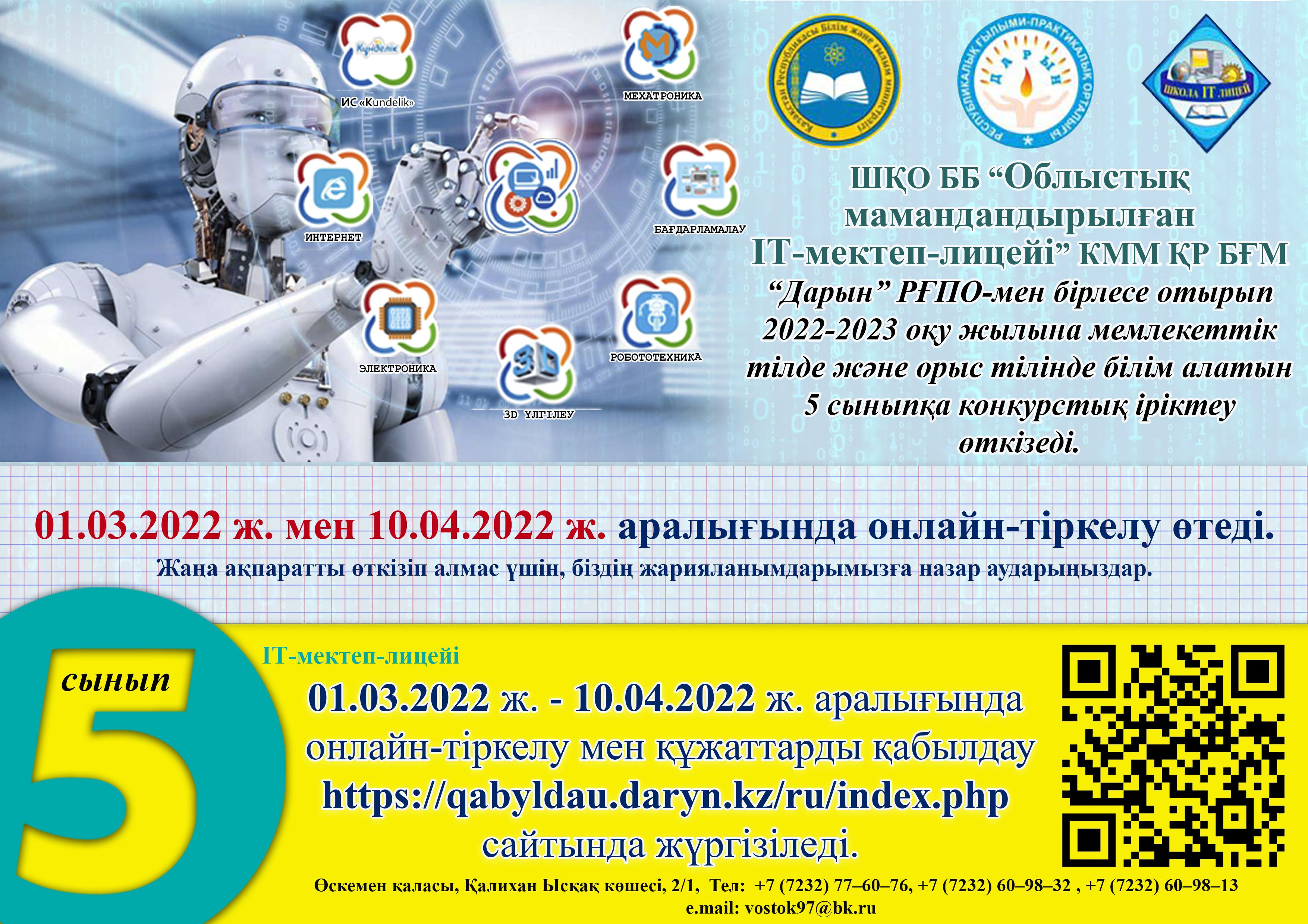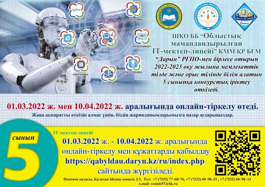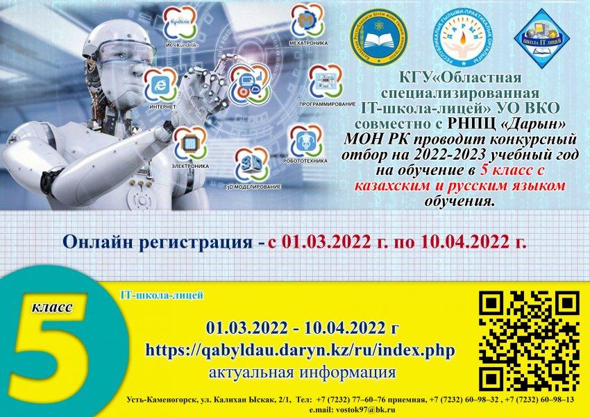 Конкурсный отбор на 2022-2023 учебный год на обучение в 5 класс с казахским и русским языком обучения » «IT-школа-лицей»