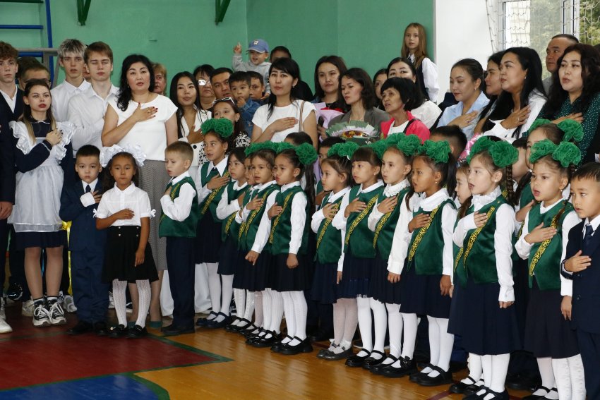 1 сентября в нашей школе прошло торжественное мероприятие, посвященное Дню знаний, «Мектебім – Мейірім мекені». В торжественнй линейке приняли участие учащиеся 1, 5, 10, 11 классов, учителя и родители.