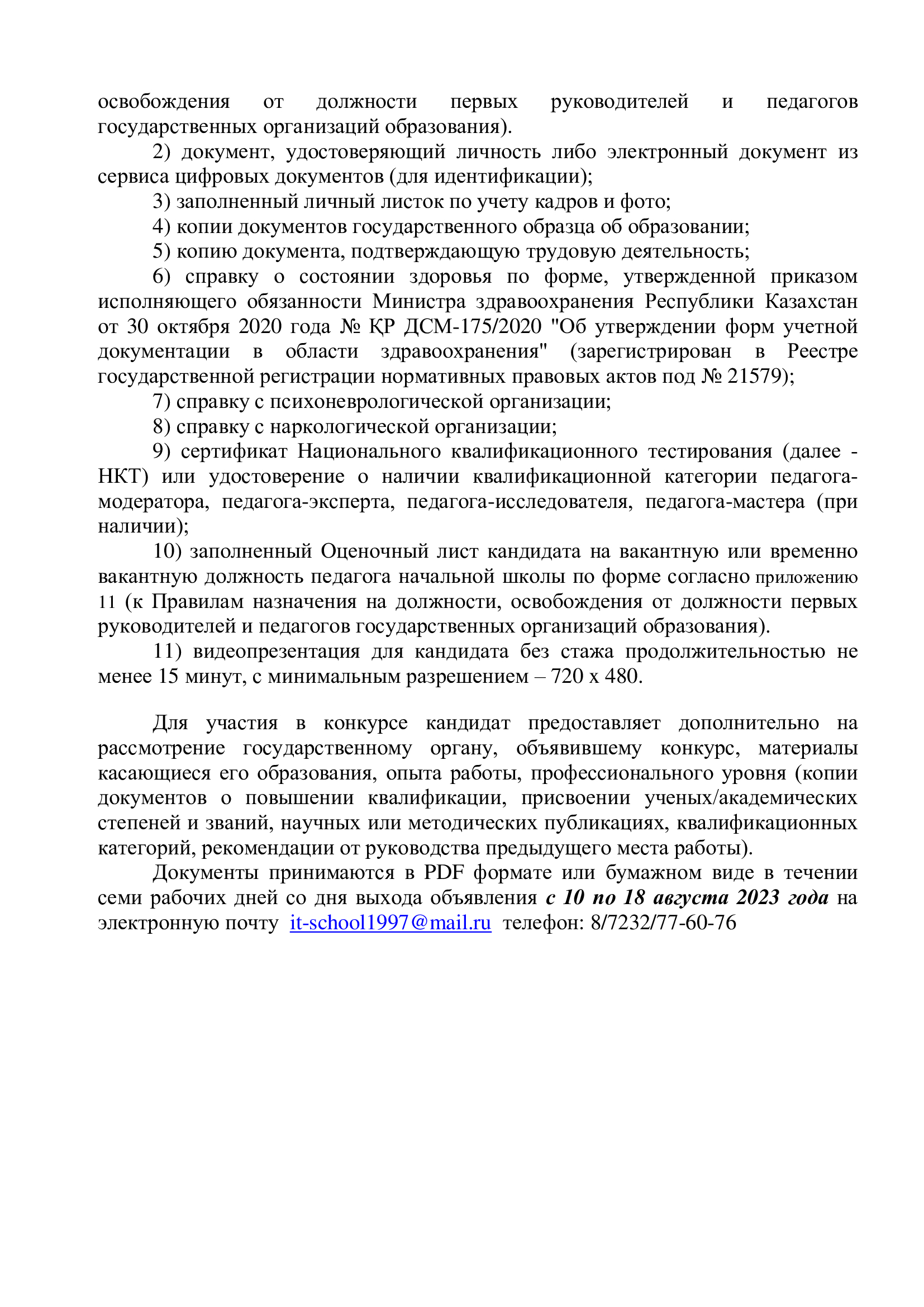 Конкурс на вакантную должность учителя начальных классов » «IT-школа-лицей»