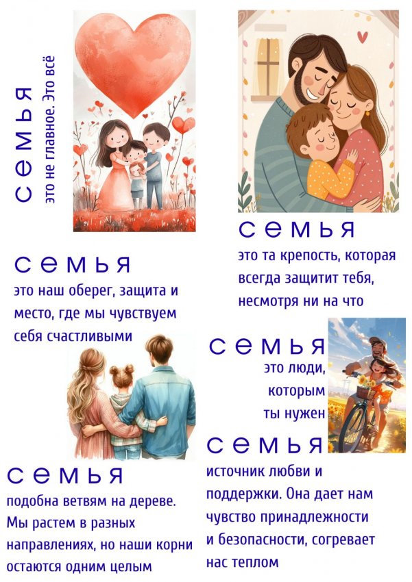В семье мы учимся любить, поддерживать друг друга и понимать свои чувства. Здесь мы делимся радостями и переживаниями, вместе смеемся и учимся прощать.