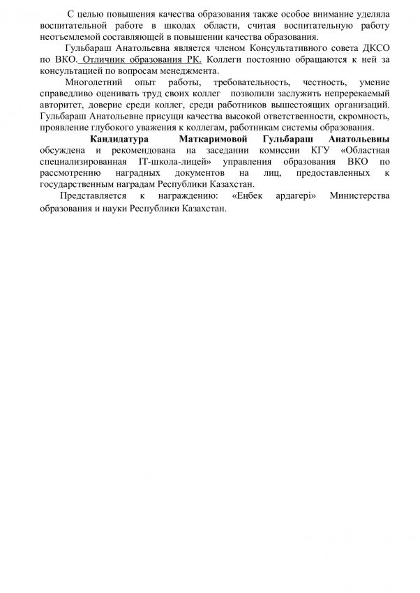 Наградной лист Маткаримова Г.А. » «IT-школа-лицей»