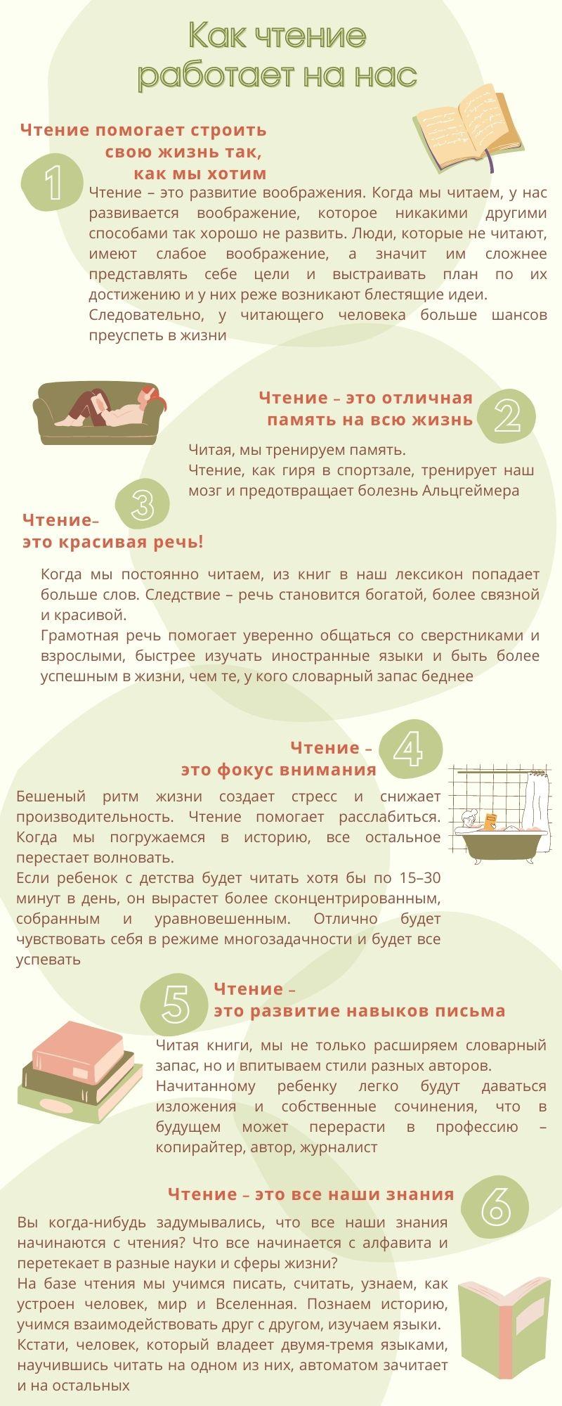 Между тем, доброе старое чтение, говоря современным языком, работает на нас. Каким образом это происходит, вы узнаете, если потратите пару минут на чтение нашей информации