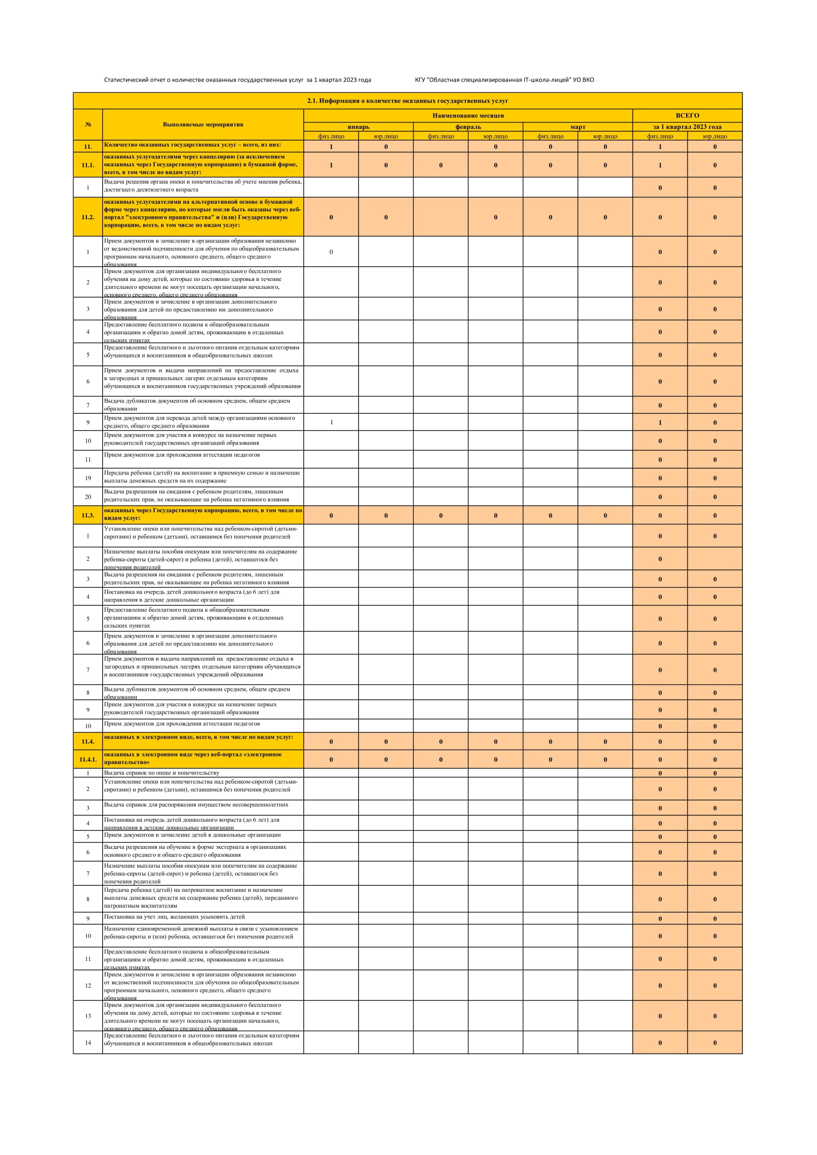 03 февраль 2023 0 1 2 3 4 5 Статистический отчет о количестве оказанных государственных услуг за 1 квартал 2023 года