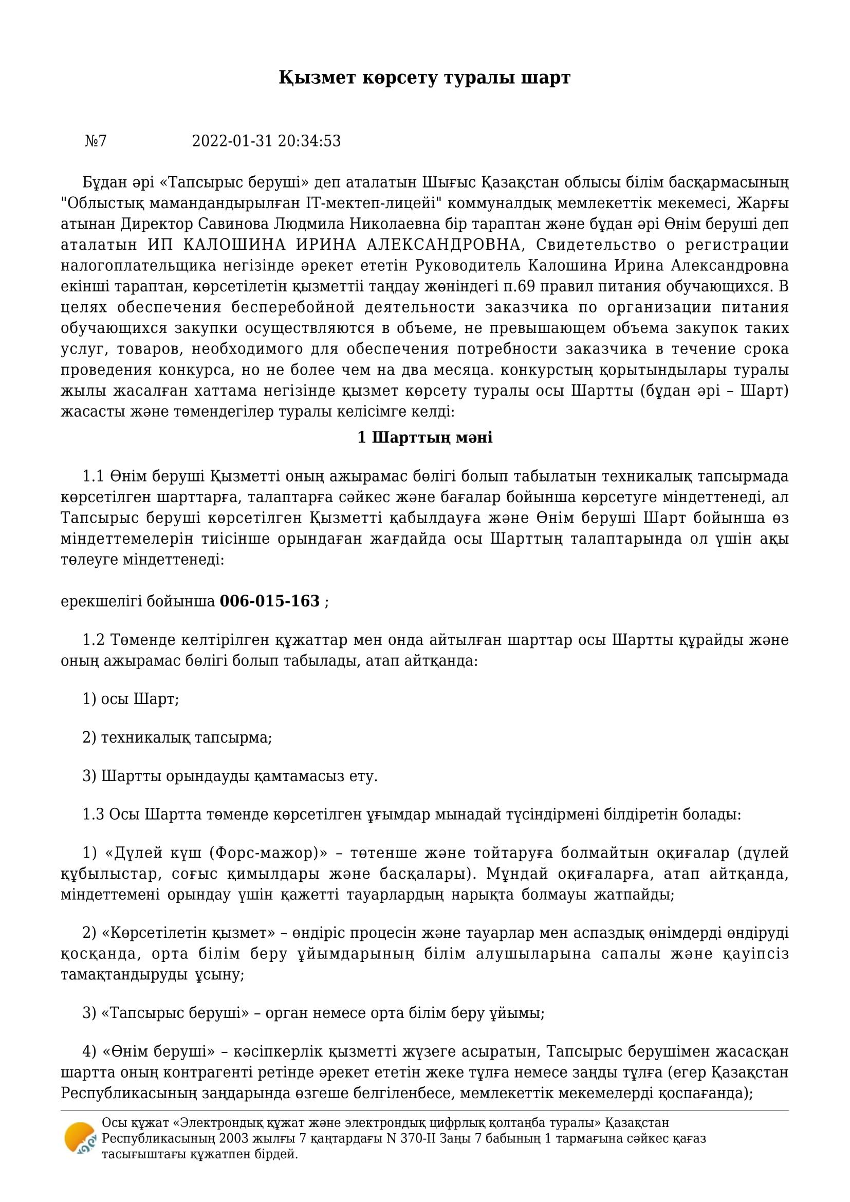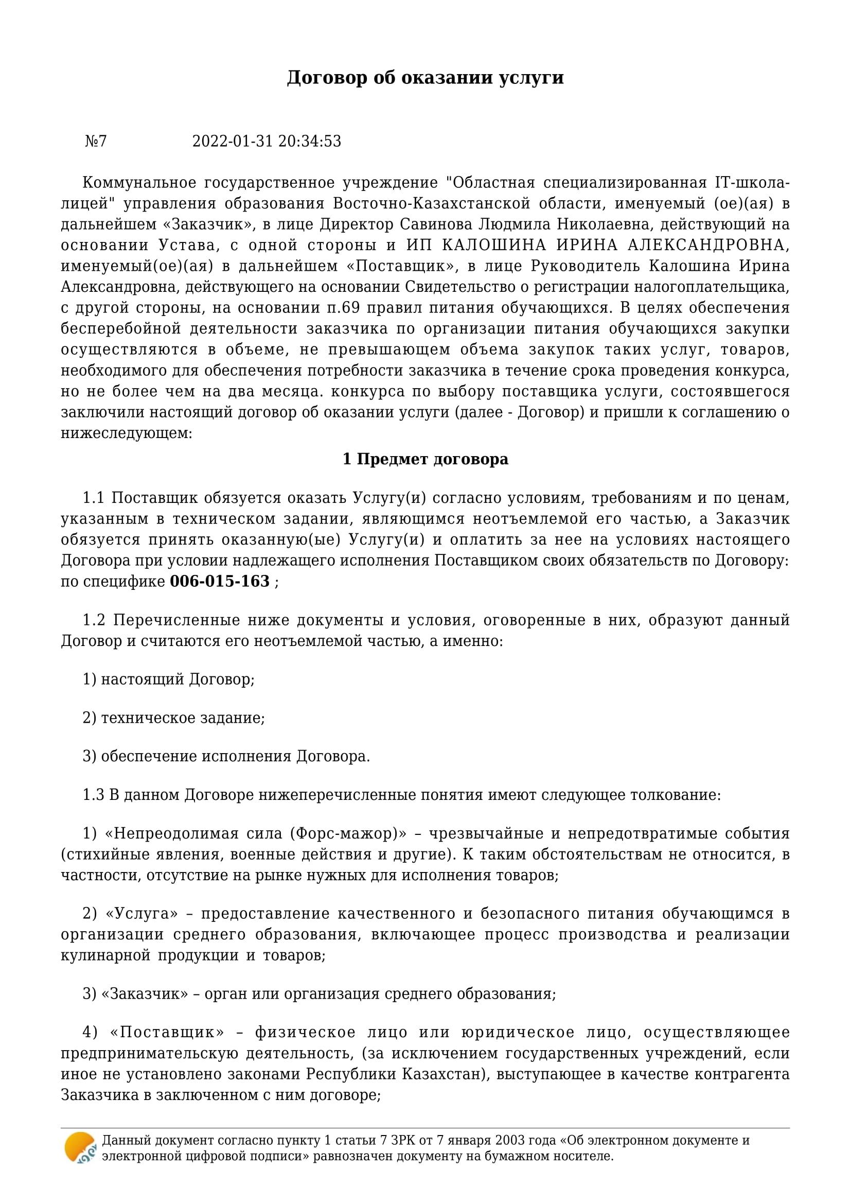 Договор об оказании услуги » «IT-школа-лицей»