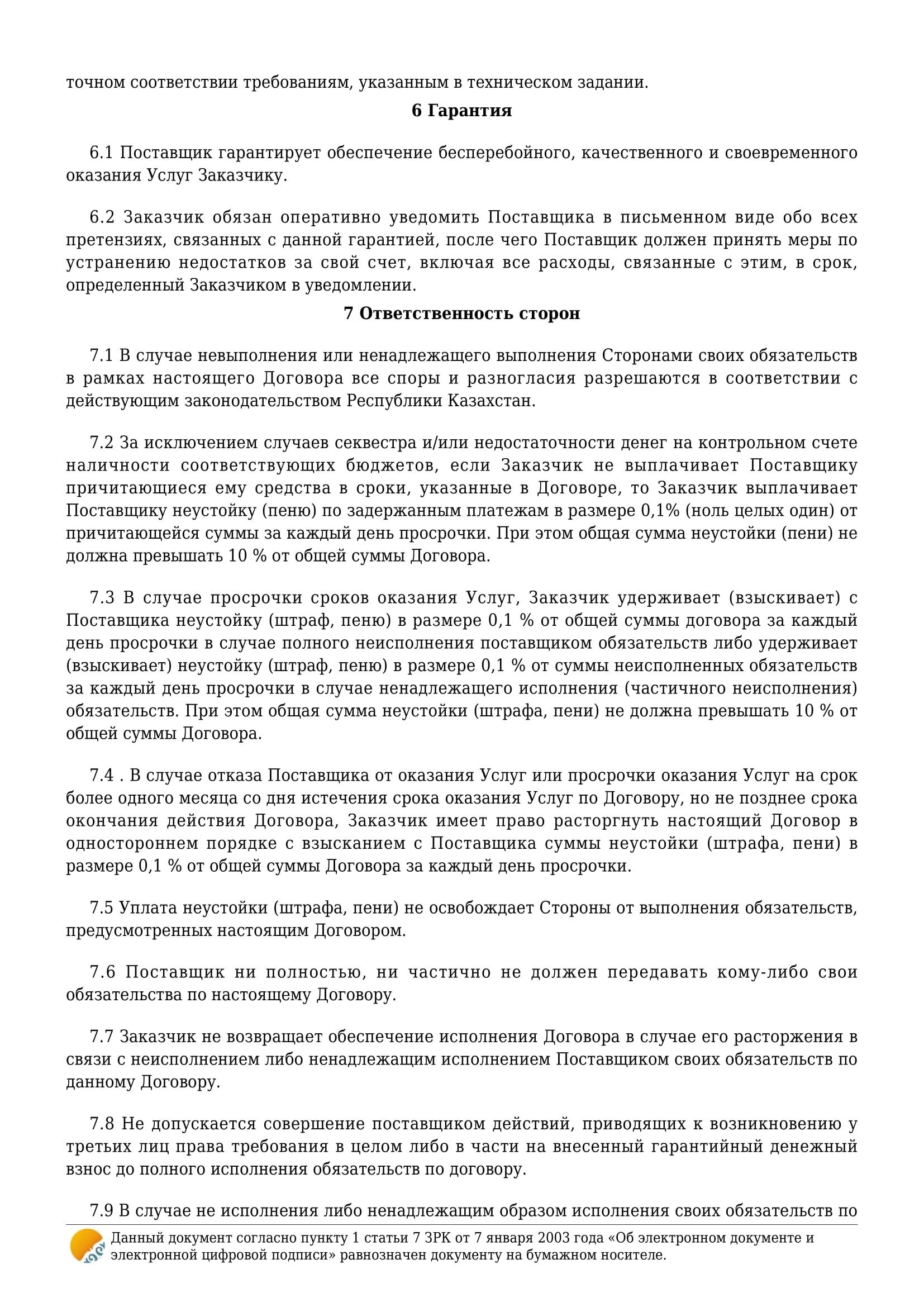 Договор об оказании услуги