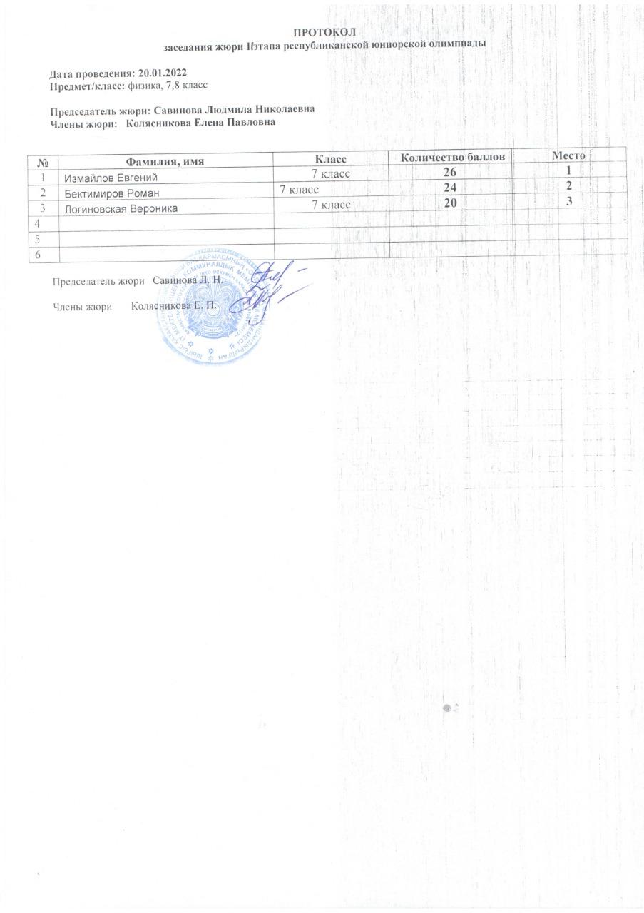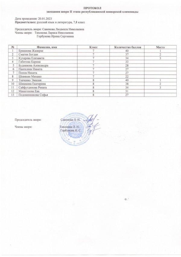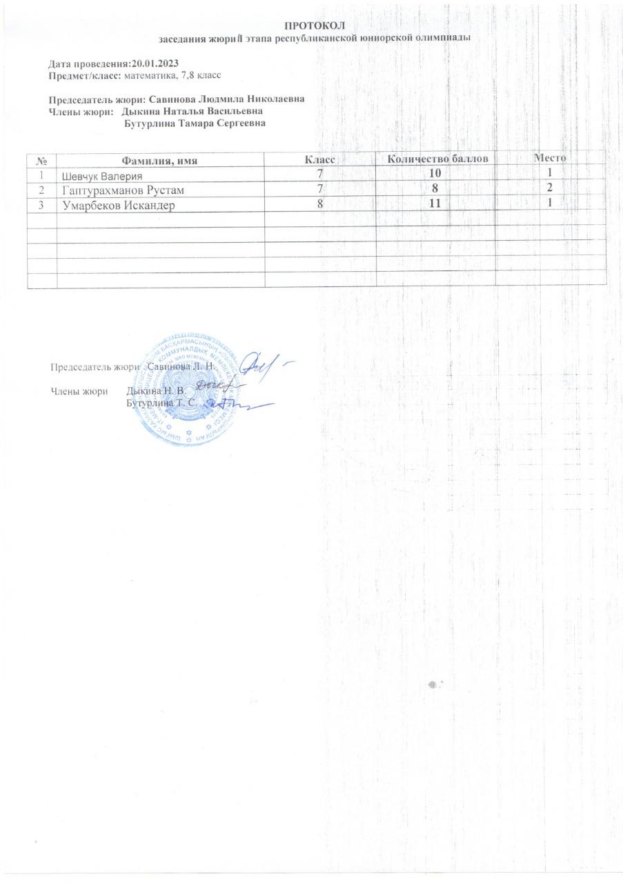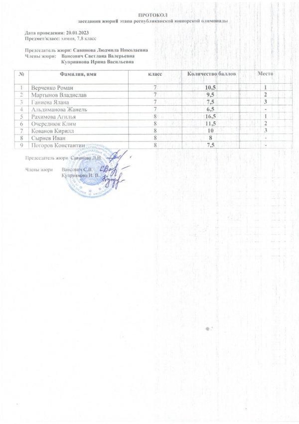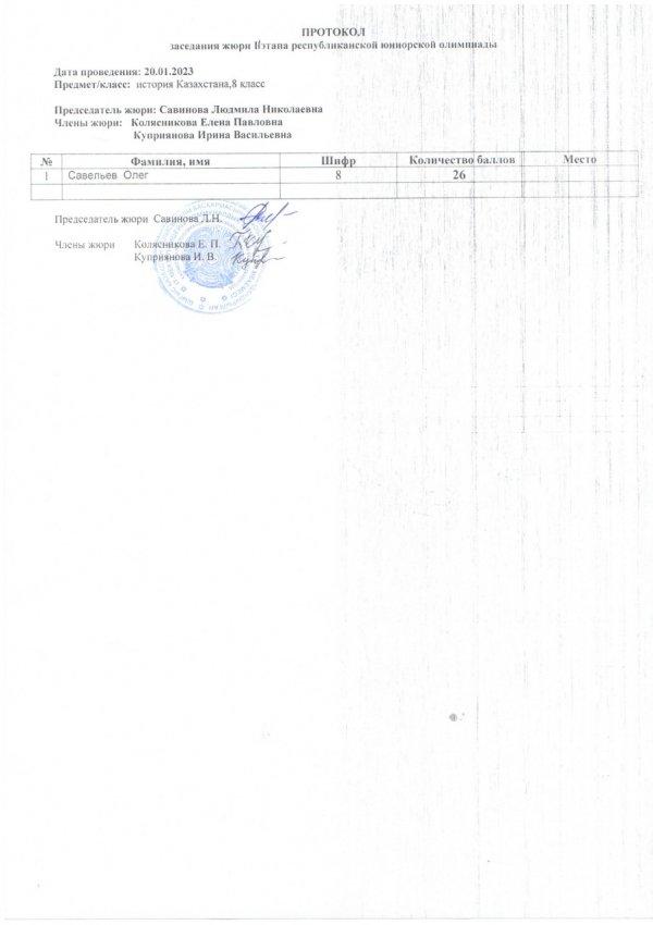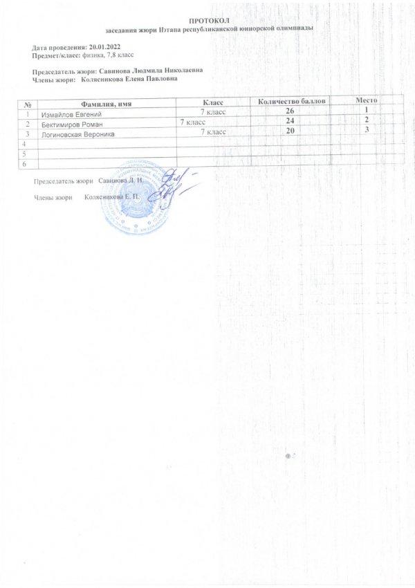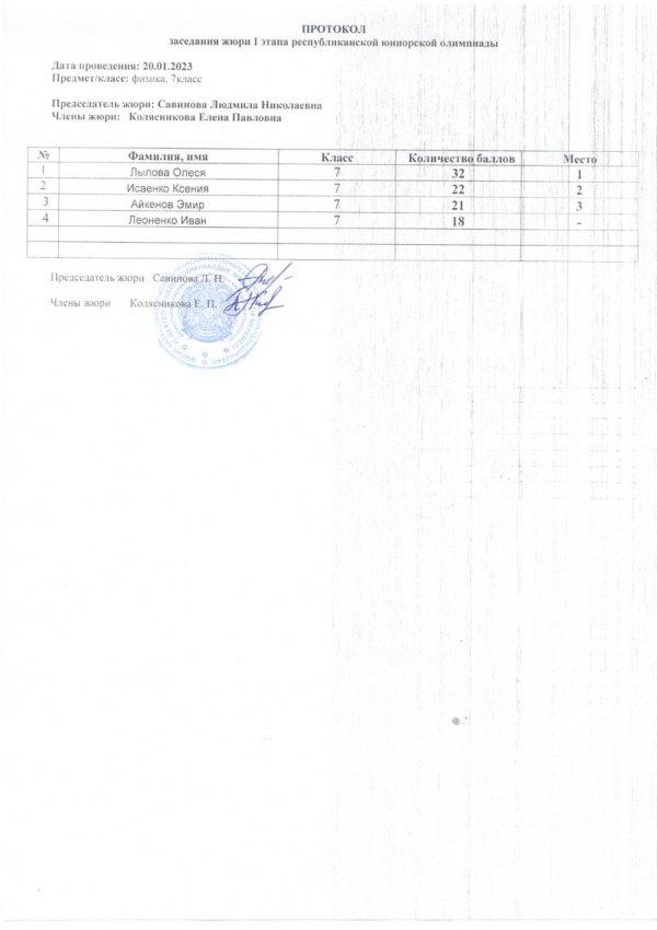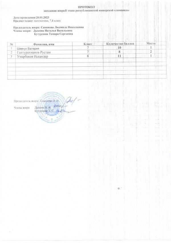 Протоколы республиканской юниорской олимпиады