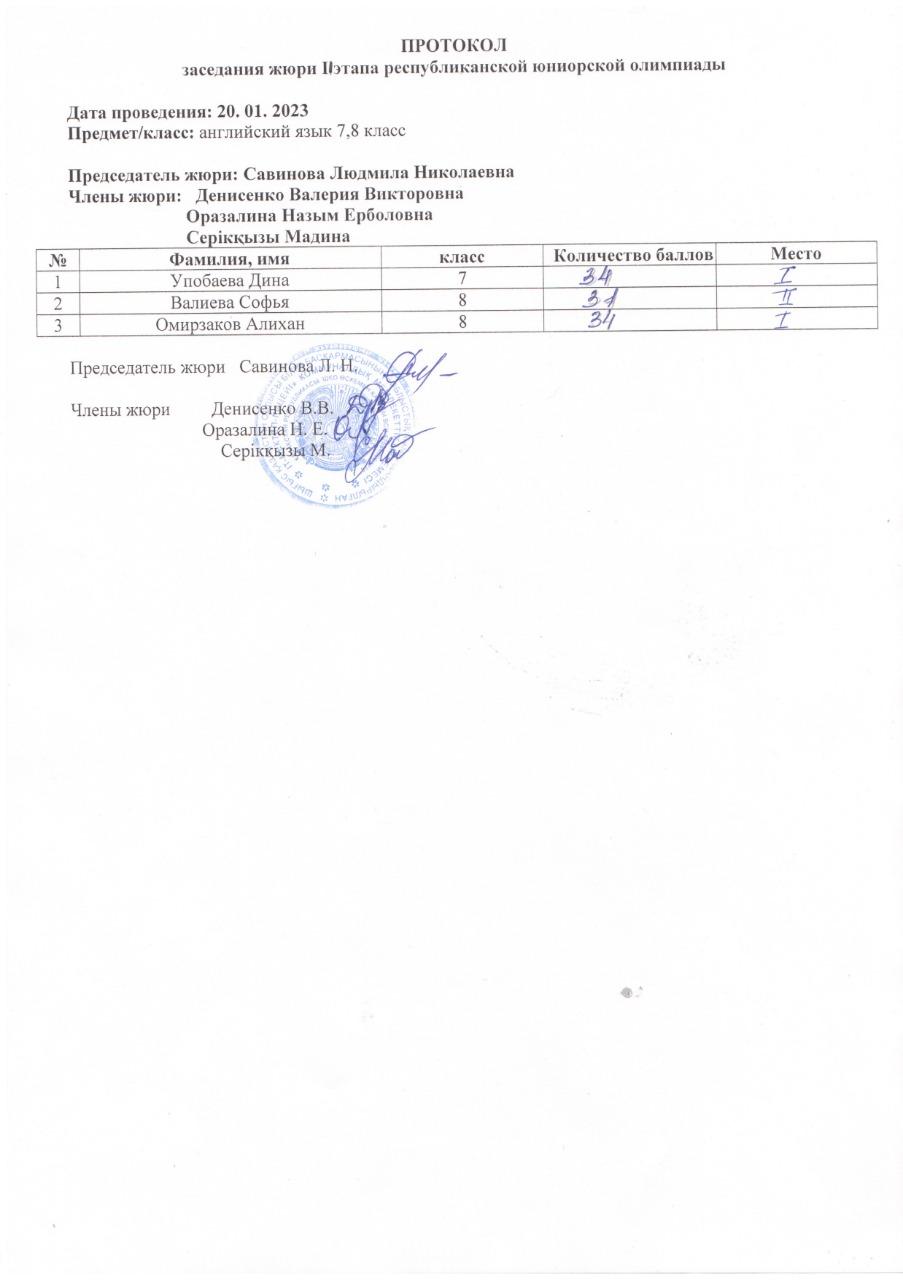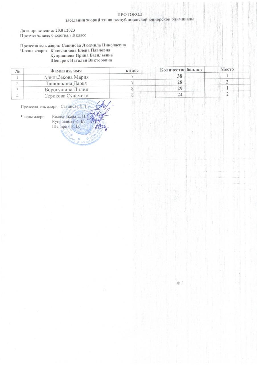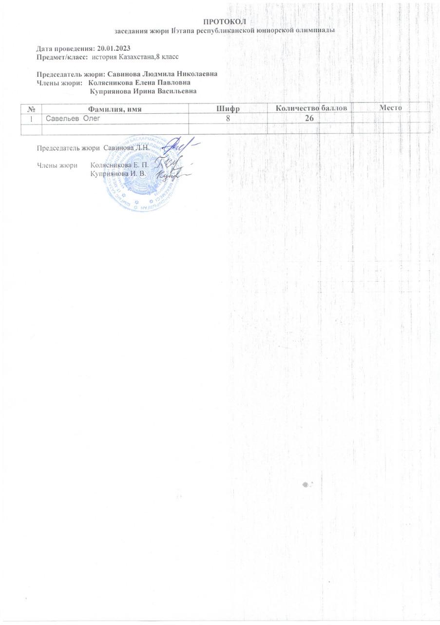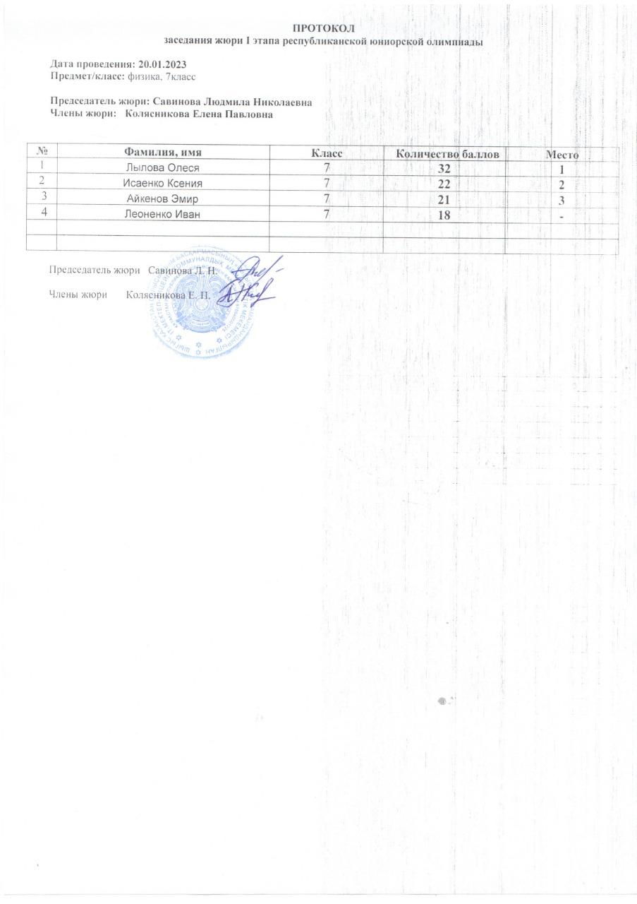 Протоколы республиканской юниорской олимпиады