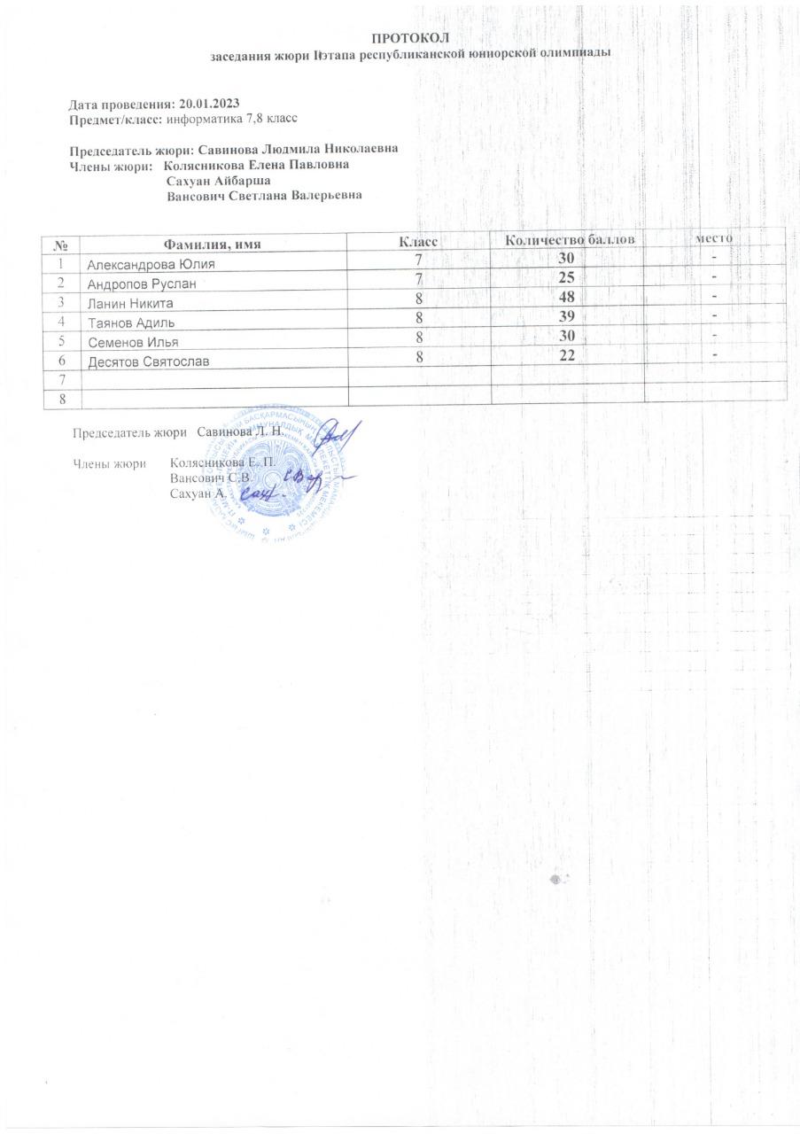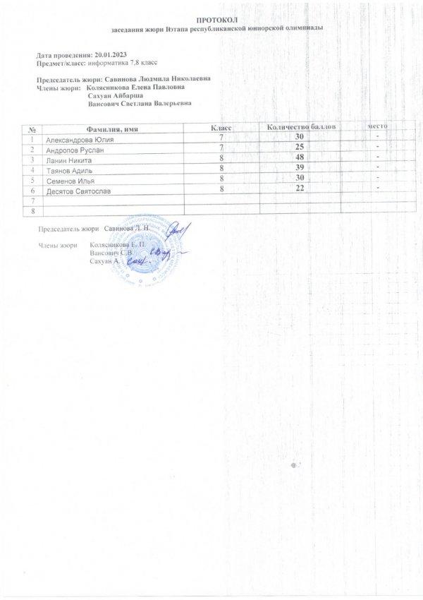 Протоколы республиканской юниорской олимпиады » «IT-школа-лицей»
